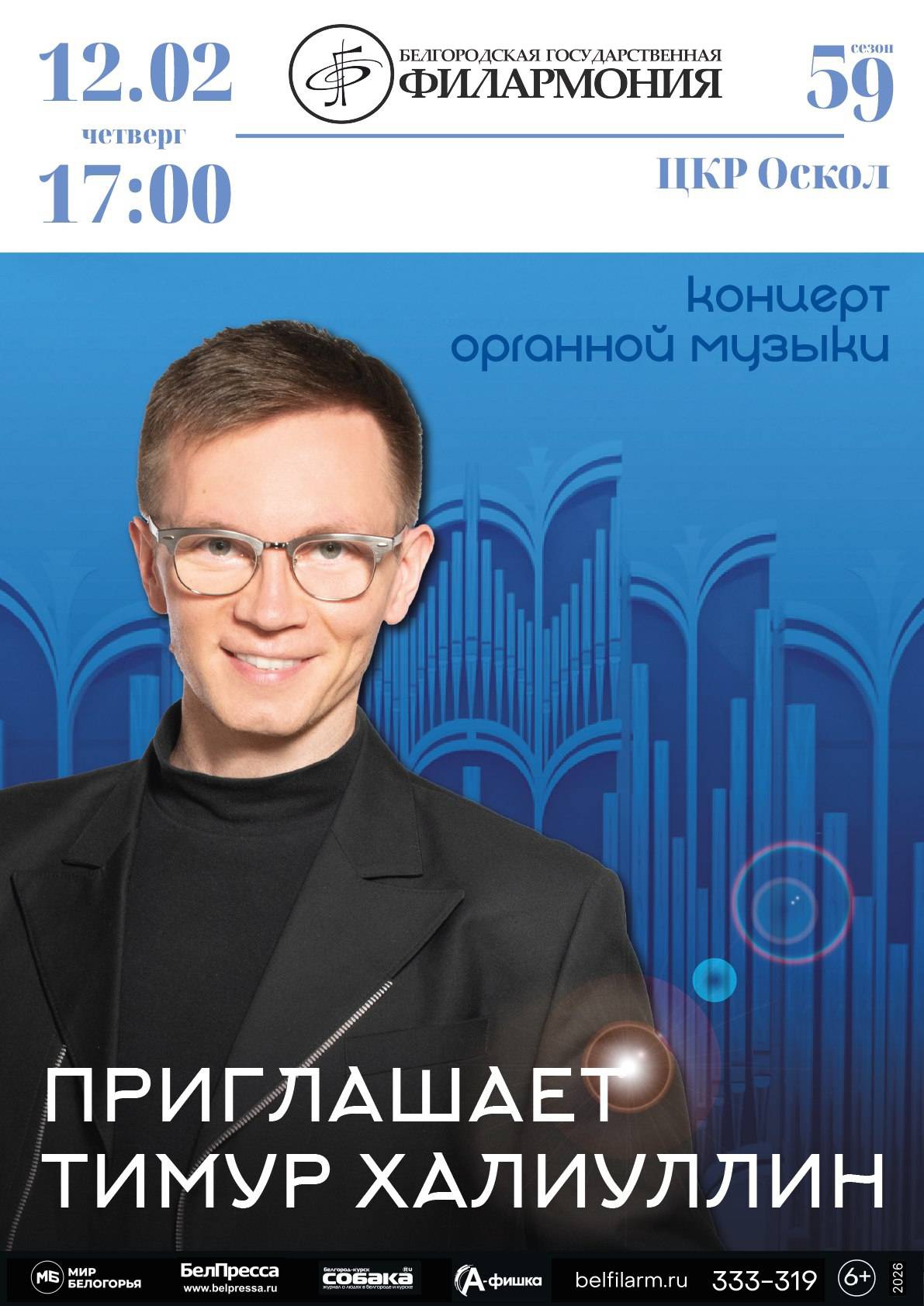 12 февраля на сцене Центра культурного развития «Оскол» выступит Тимур Халиуллин - талантливый органист, обладатель премии «Органист года».