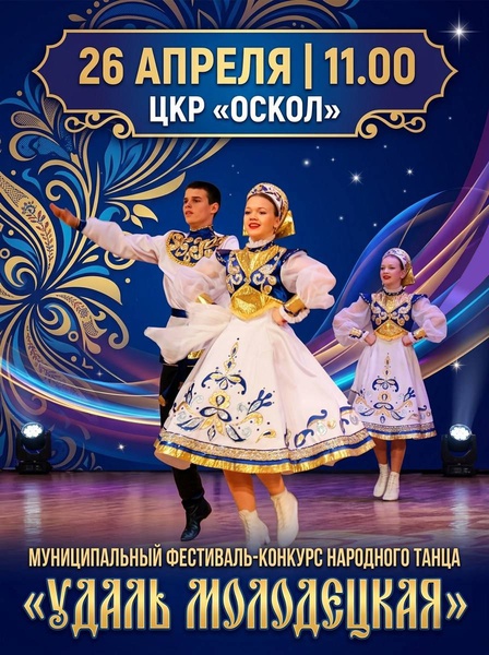 26 апреля на базе Центра культурного развития «Оскол» состоится муниципальный фестиваль-конкурс народного танца «Удаль молодецкая». В конкурсной программе примут участие хореографические коллективы из учреждений культуры и дополнительного образования Новооскольского округа.