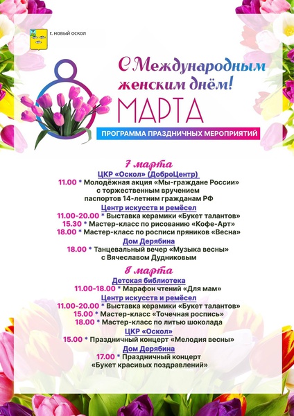 Программа праздничных мероприятий, посвящённых Международному женскому дню